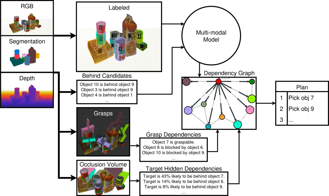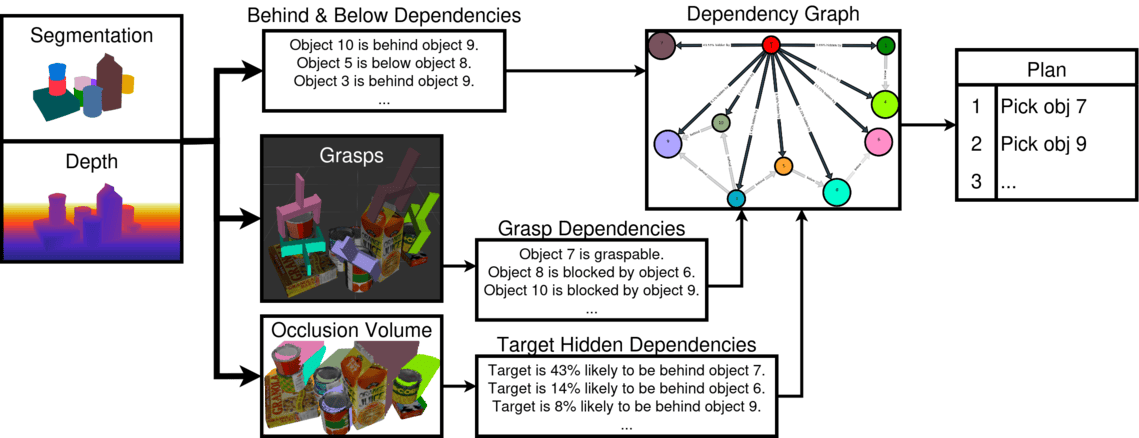 An engineered selection method (DG-SELECT) is adapted from previous work, which uses dependency graphs that express object relationships. In the previous work, these dependencies could be computed explicitly given ground truth knowledge of the object's models and poses. Here, these dependencies are computed from perceptual information without access to object models.